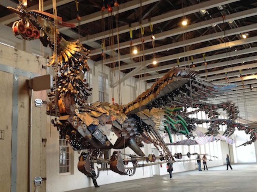 This week we are featuring another exhibit right here in NYC! Xu Bing is a sculptor from Beijing who has built two beautiful phoenixes out of construction debris. He was inspired by the new World Trade Center in Beijing– a beautiful piece of architecture, but built by workers in terrible conditions. Fierce and daunting, it critiques Chinese labor, industrialization and rapid modernization.
