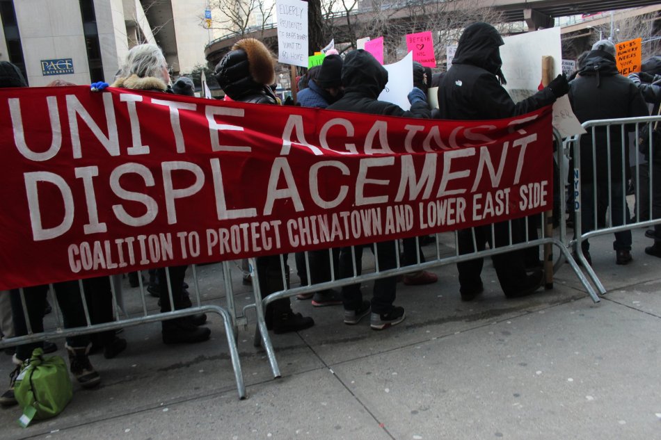 85 Bowery Street tenants and their supporters chanted in both English and Mandarin front of the Housing Preservation and Development Department at 100 Gold Street on Friday, February 2nd. On January 18th, 75 of these Chinatown tenants were forcibly removed from their homes due to allegedly unfair practices by landlord Joseph Betesh.