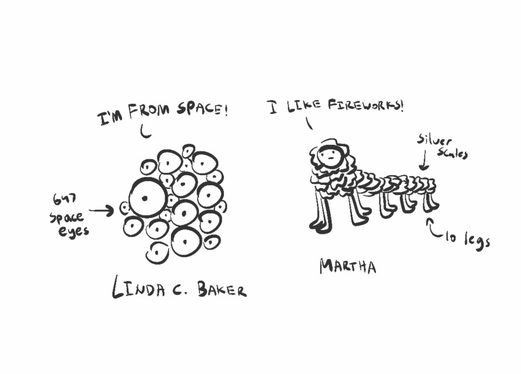 Linda didn’t particularly mind. Martha did enough talking for the both of them. In the span of a month Linda learned practically everything about Martha. Martha was 20 (Earth) years old, had two gerbils, despised seafood, adored donuts, and above all else was obsessed with fireworks. Martha had every type of firework memorized and kept track of the new latest fireworks, which surprised Linda because she didn’t even know people were inventing new fireworks. As a whole, Linda thought this was weird, to be super obsessed with fireworks, but she had learned that it was considered impolite to tell someone you think they’re a total freak for being obsessed with fireworks.