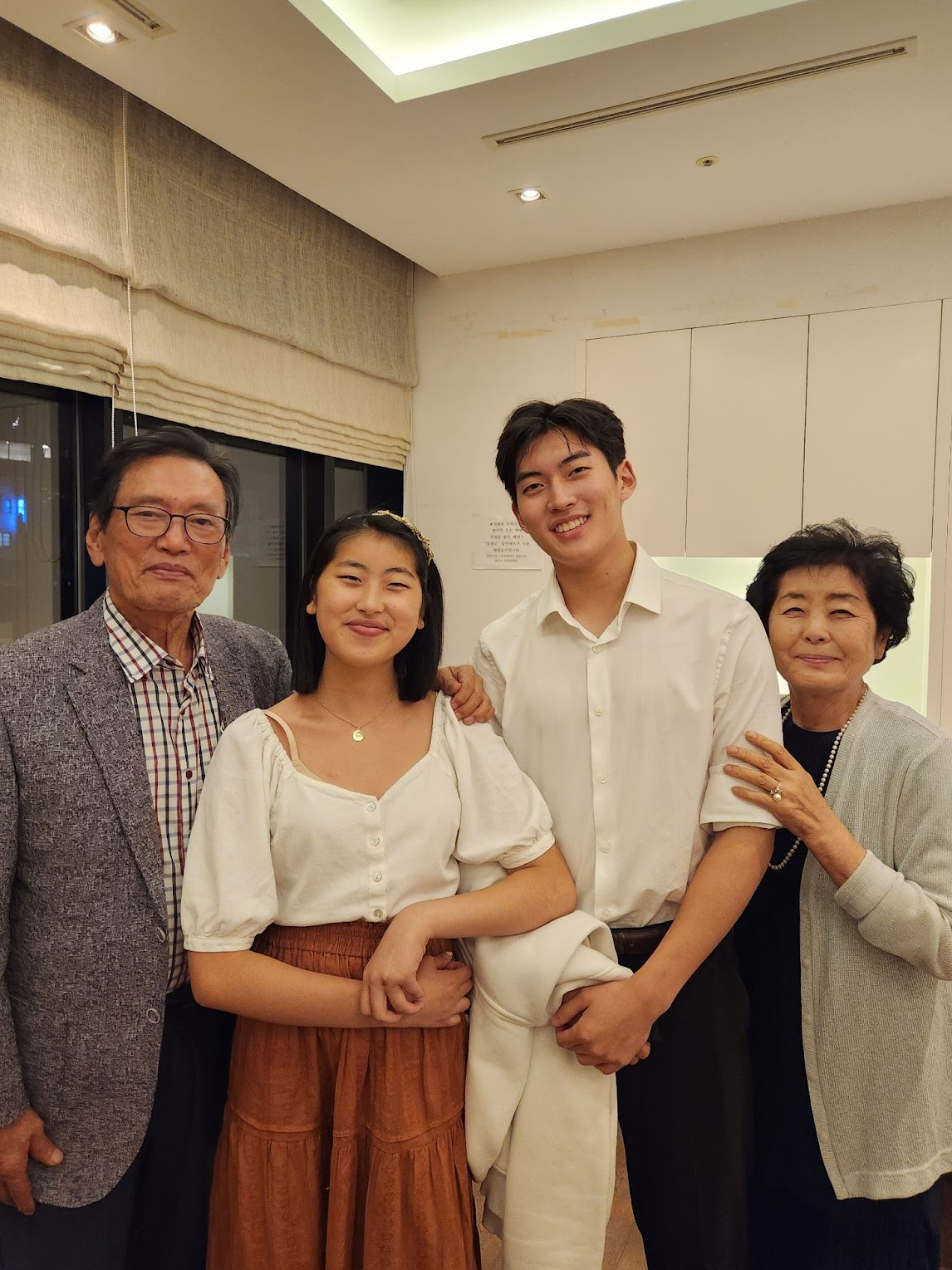 Pictured here: my brother, Christopher (middle-right), and me with our grandparents in Seoul