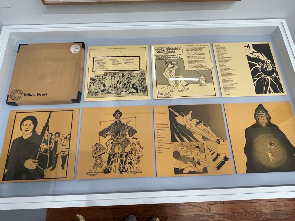 I was particularly drawn to the print works, in part because of my own inclination to printmaking and in part due to the accessible nature of printed works. It’s through the accessibility of the printed works that promotes not only community but inspires activism on behalf and within these communities. It was inspiring to see the work of Chinatown-based Basement Workshop, “the foremost pan-Asian political and arts organization operating on the East Coast of the United States”. I often think of Chinatown as the ultimate show of community within the city; a common language of Cantonese and unique architecured alleyways filled with butchershop and hole-in-the-wall restaurants separating this area of downtown from the rest of Manhattan. From the start, the artwork was entangled with politics at the Basement Workshop. Basement Workshop would hold workshops to create posters to “bring to protests and marches around the city”. One of the displays was pages pulled from an anthology produced by the Basement Workshop, Yellow Pearl. The artworks and writing in The Yellow Pearl speak to a larger Asian American experience through the telling of individual experiences, like Fay Chiang’s eggrolls and wonton soup, that puts stereotypical Asian characters and foods beside the lived experience of the working-class Asian American family to call for change.
