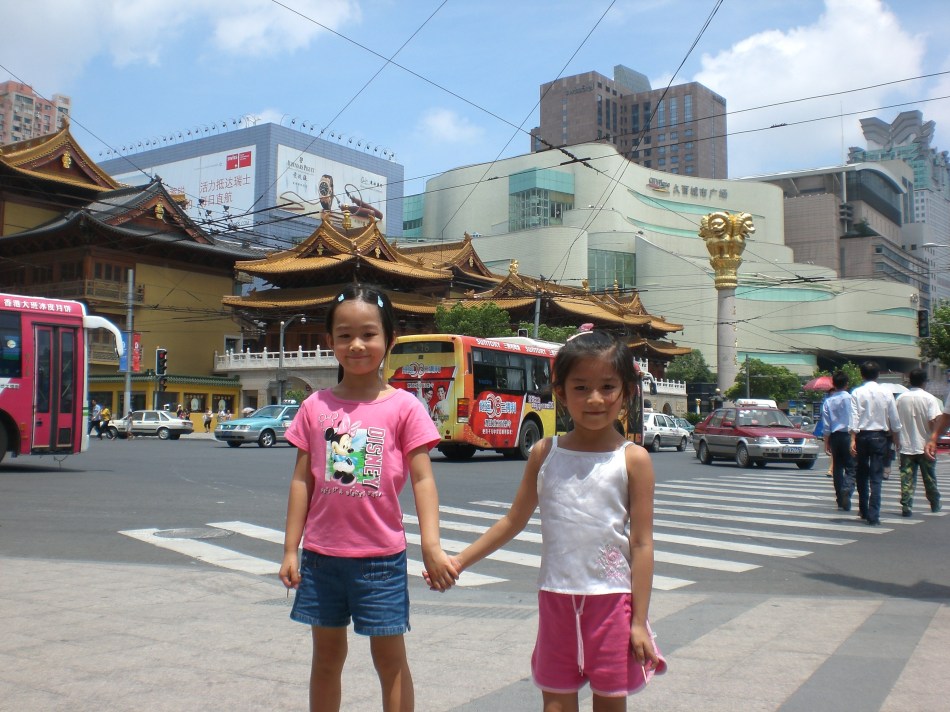 (Right) My cousin and I standing in front of the famous Jing An Temple and Jiu Guang Mall.